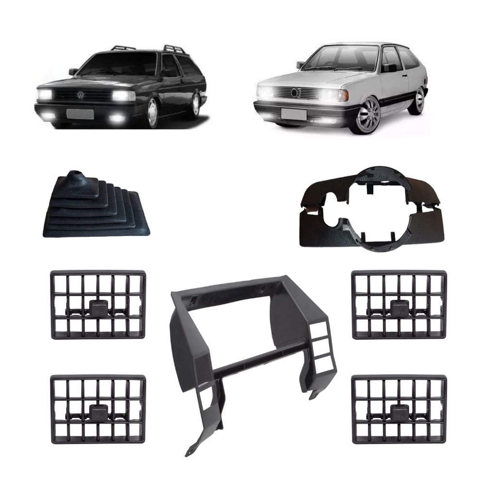 Kit Moldura Painel Central Rádio + Jogo Difusores Grade Saída de Ar Gol Saveiro Parati G2 Bola 1995 1996 97 98 99 00 01 02