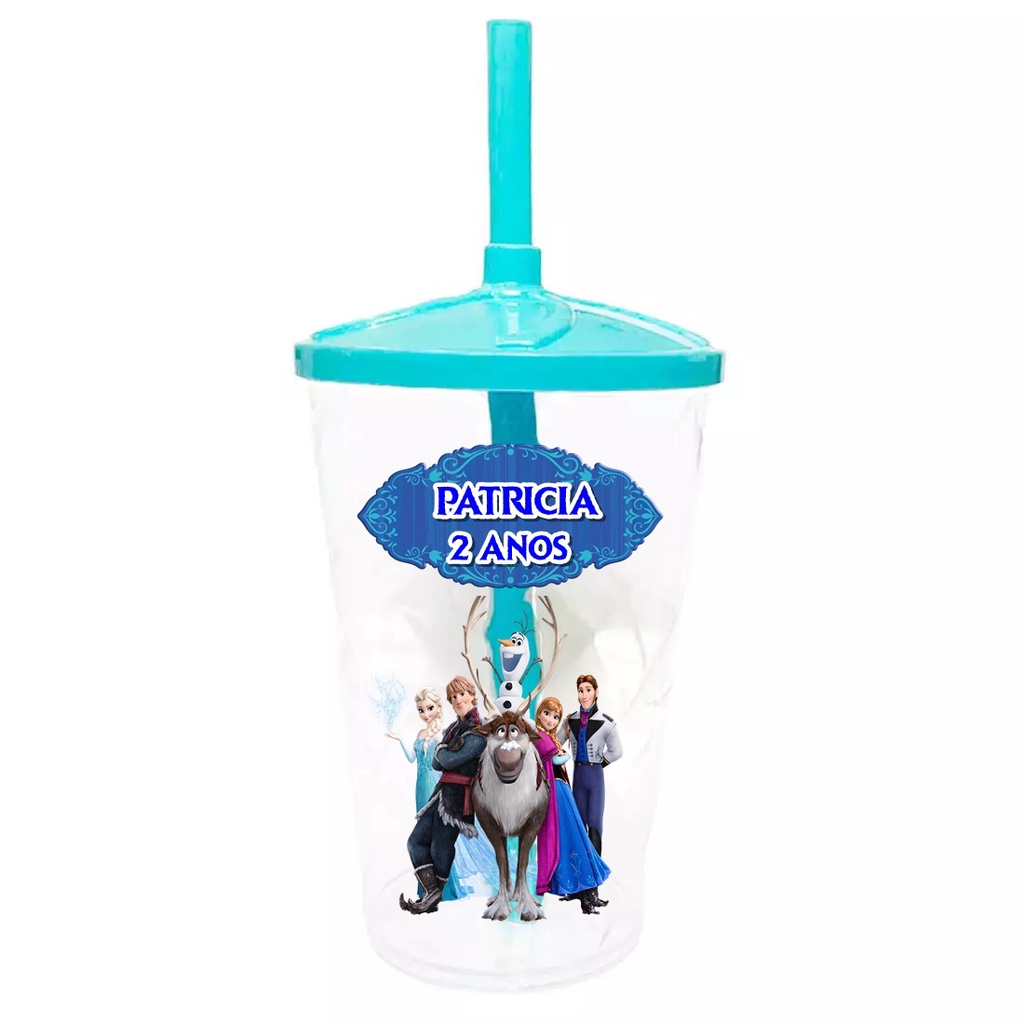 Kit C/ 15 Copos Twister Shake Personalizado 400ml C/Tampa e Canudo Tema Frozen