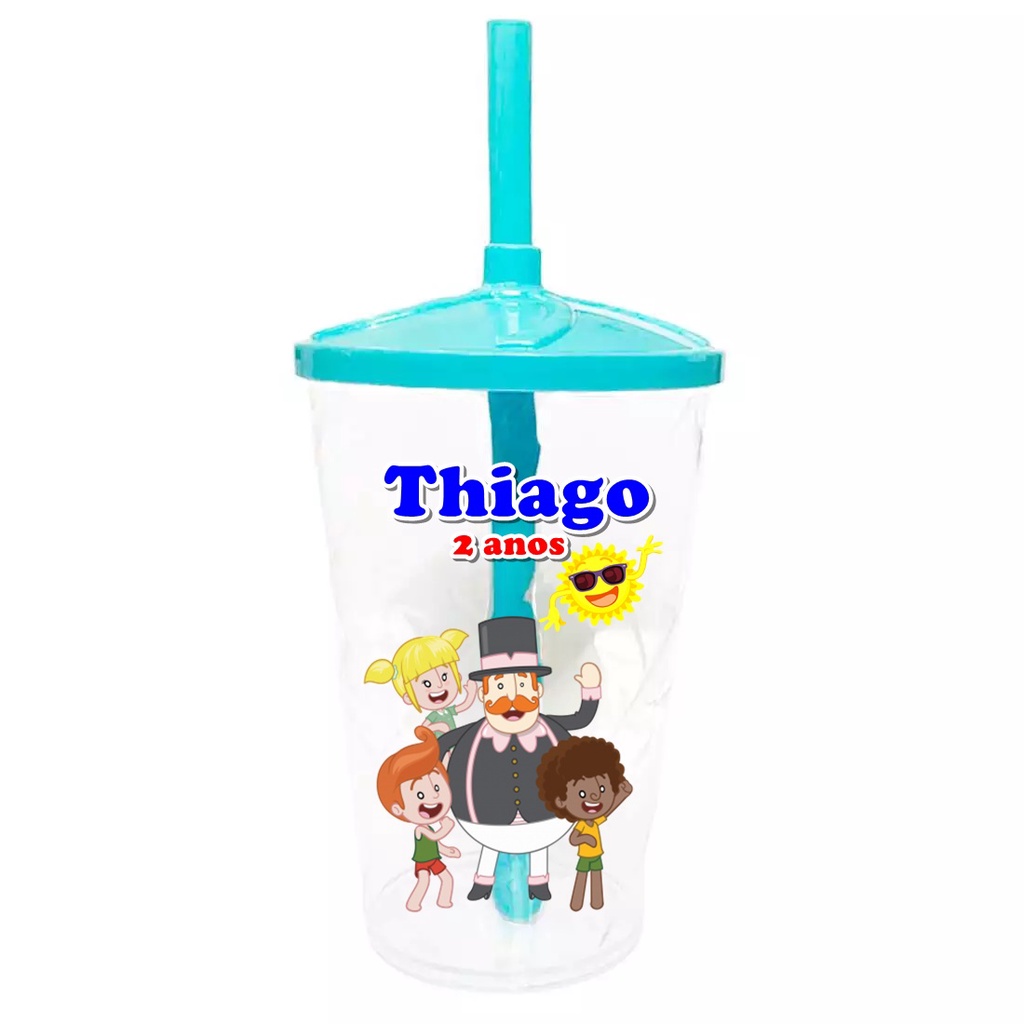 Kit C/ 10 Copos Twister Shake C/ Tampa e Canudo Personalizado Lembrancinha Festa Infantil