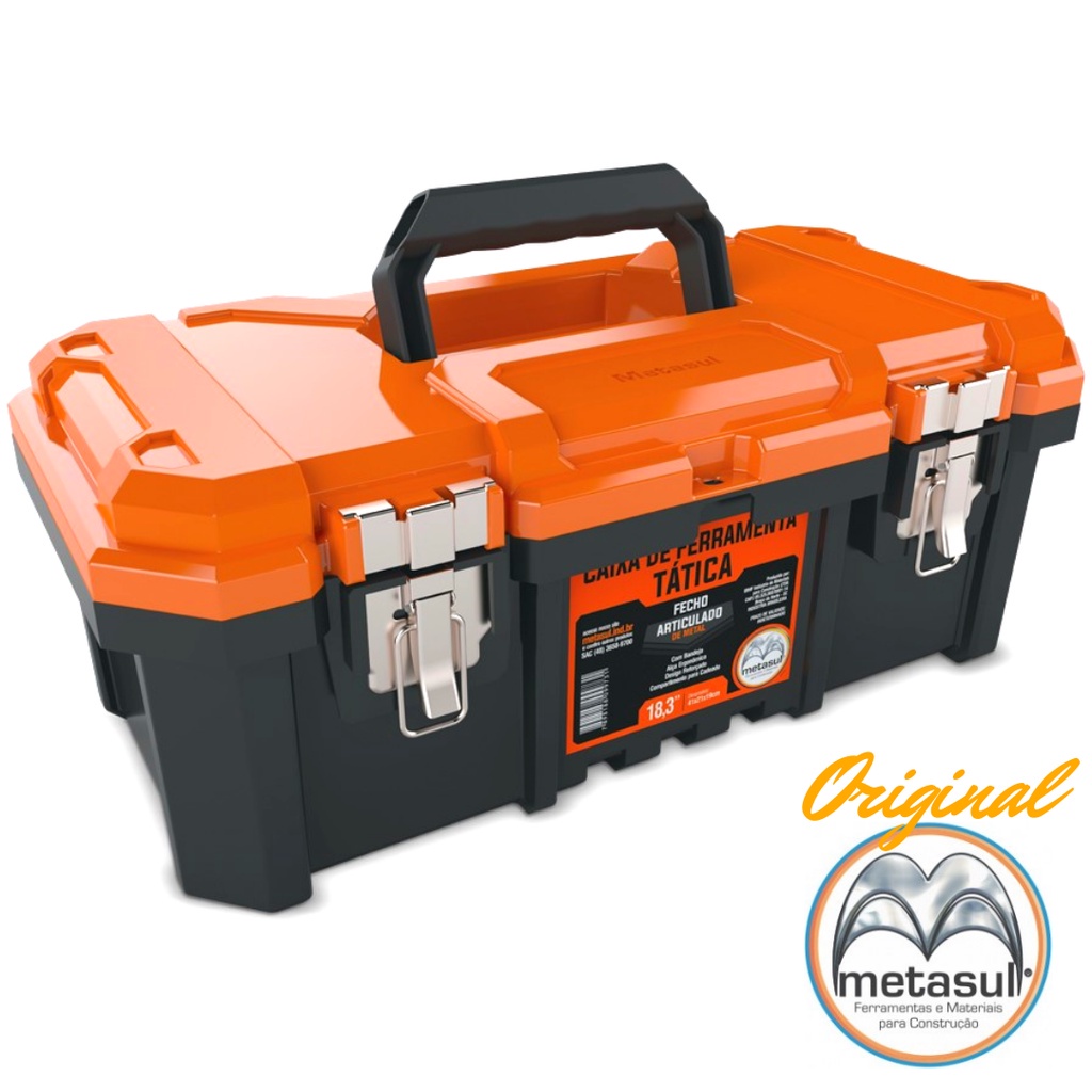 Caixa de Ferramentas Grande Reforçada Tática 18.3" PP Cores Original Metasul