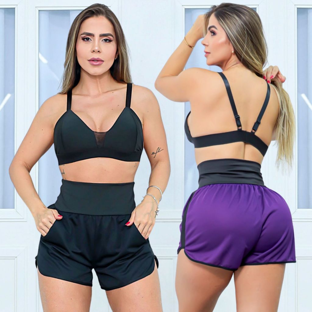 Top com Bojo e Short Conjunto 2 Peças Fitness Não é transparente Feminino Levanta Bumbum Short de Academia Tamanho Único ref: 2274a ou 2274