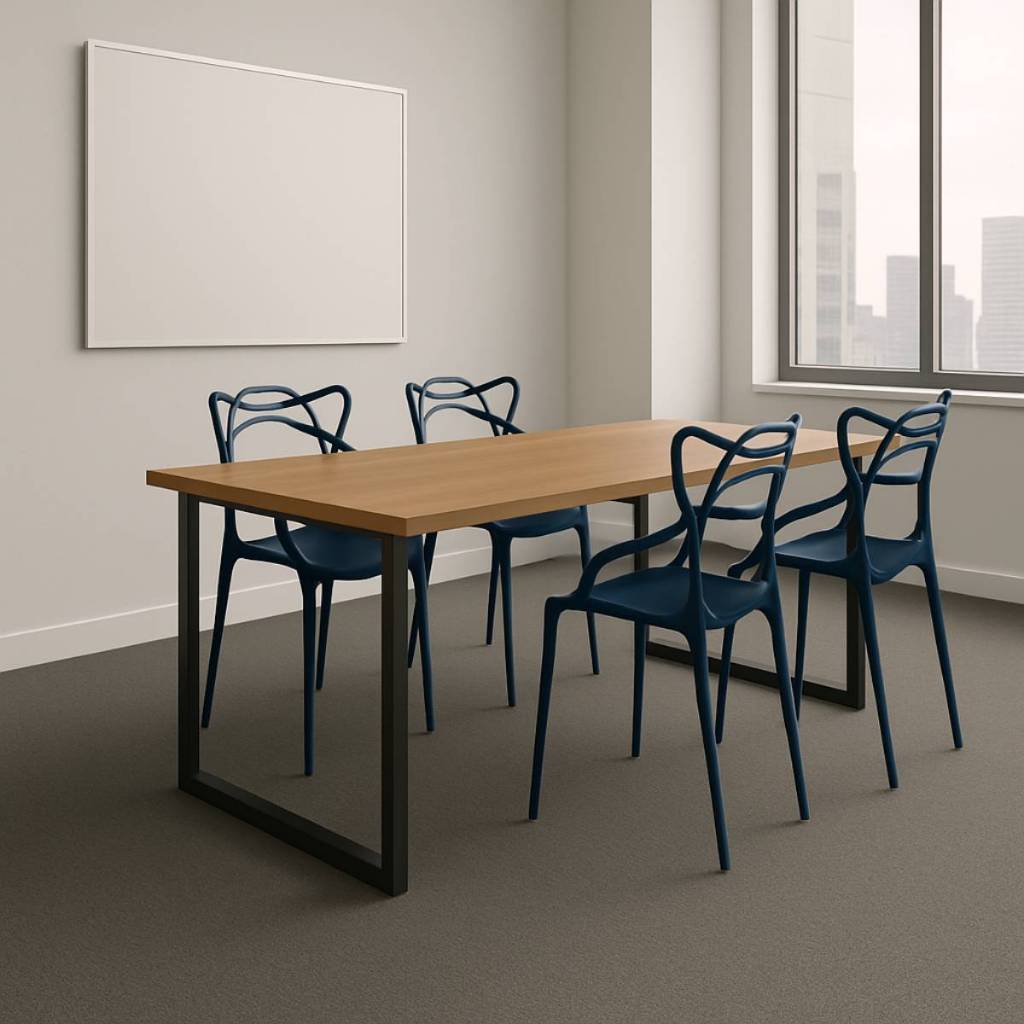 Kit Mesa Estrutura de Ferro Pés com Ligamento de MDP e 4 Cadeiras Allegra Ideal para Ambientes Modernos