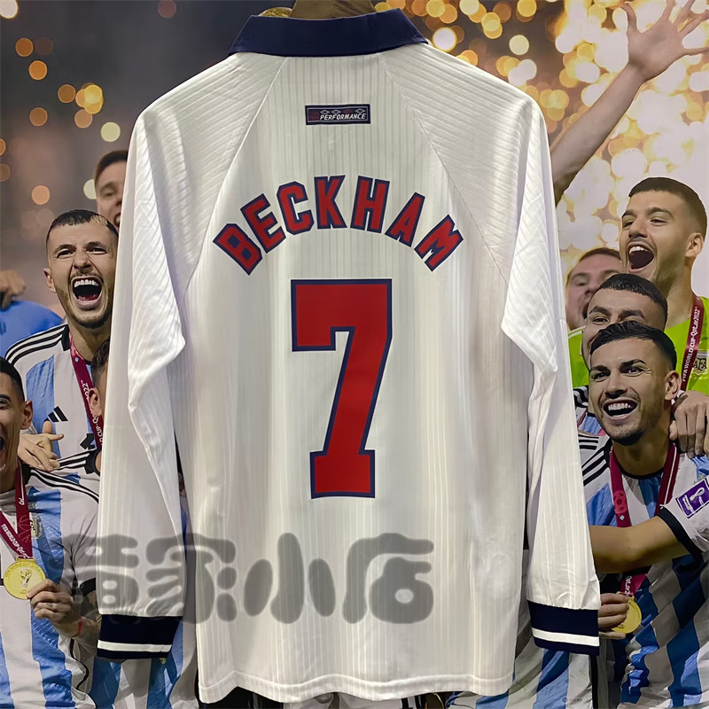 Copa do Mundo de 1998 Inglaterra Home Jersey de manga comprida No. 7 Seleção Nacional Beckham Uniforme Uniforme da Equipe Retro de Futebol