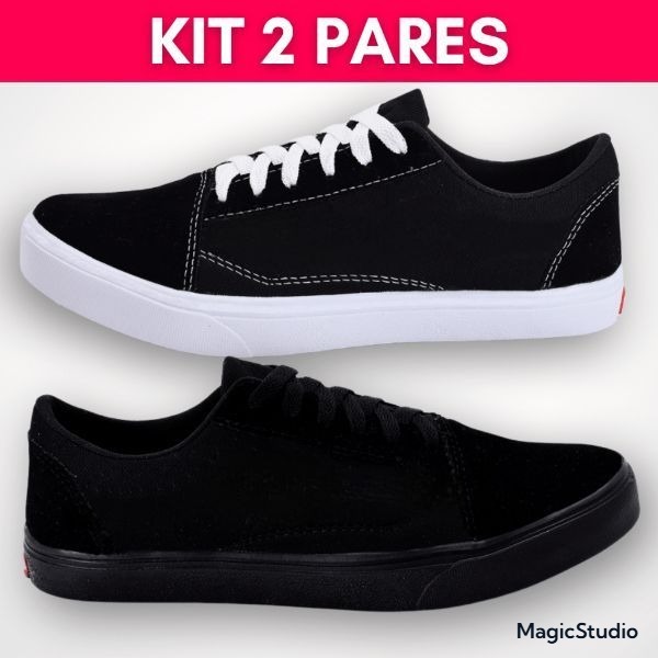 Kit 2 Pares Tênis Casual Escolar Retrô Masculino E Feminino Confortável Leve