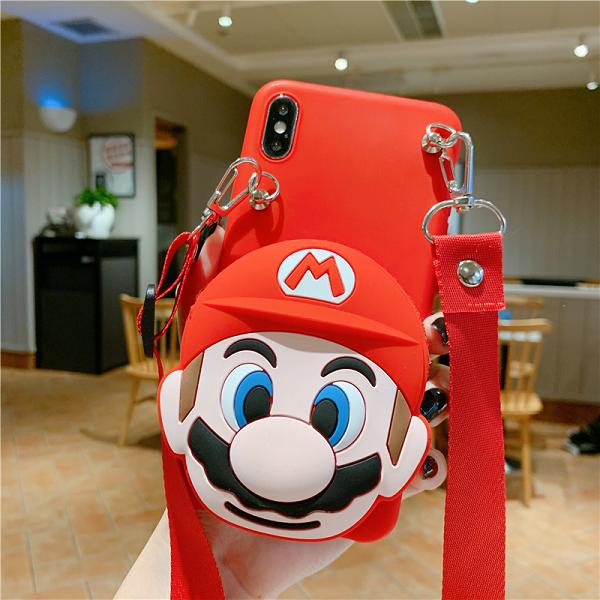 Para iPhone 6 6S 7 8 Plus X XS Max XR 14 15 13 12 Mini 11 Pro Luxury Release Stress Mario Moeda Zíper Zero Saco De Carteira TPU Soft Capa Traseira Com Cordão