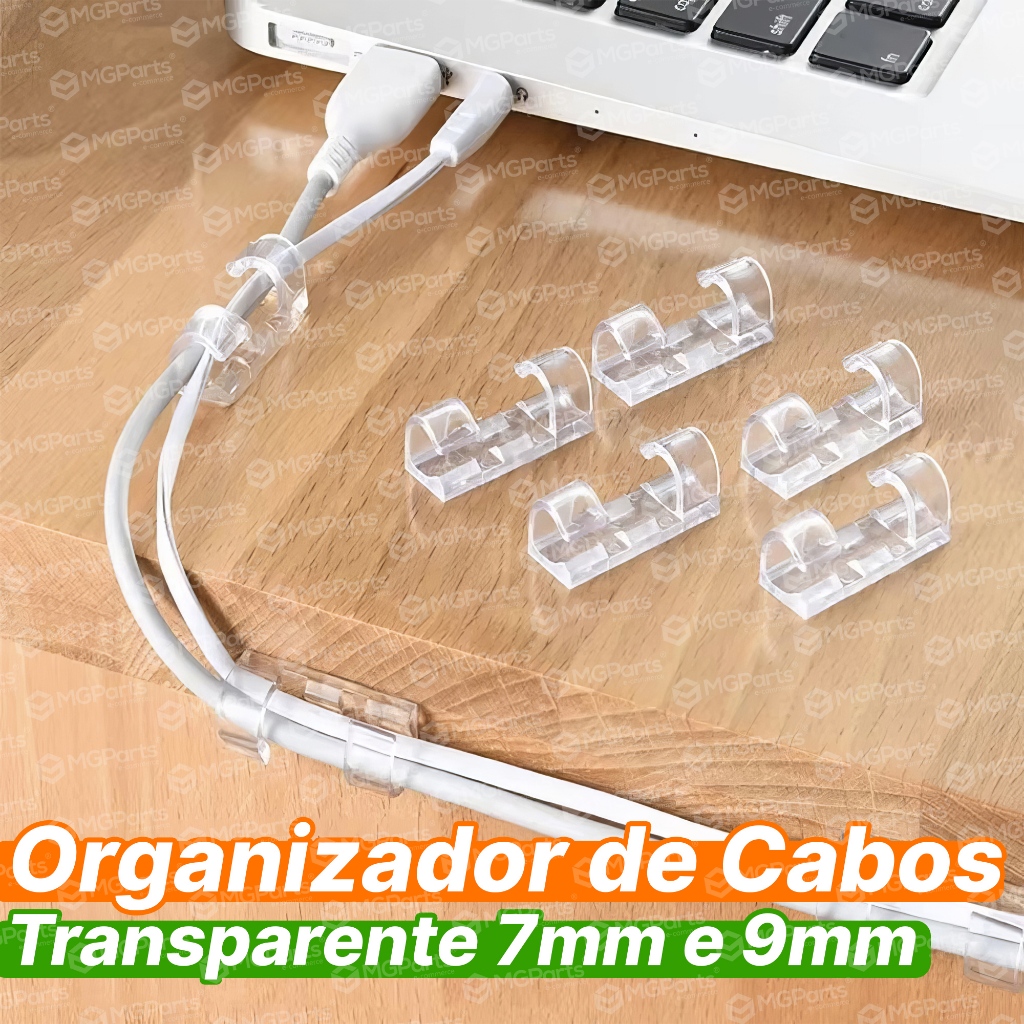 Kit 40 Clips Fixador Organizador de Cabo Com Fita 3M Adesivo Prendedor Transparente Colante