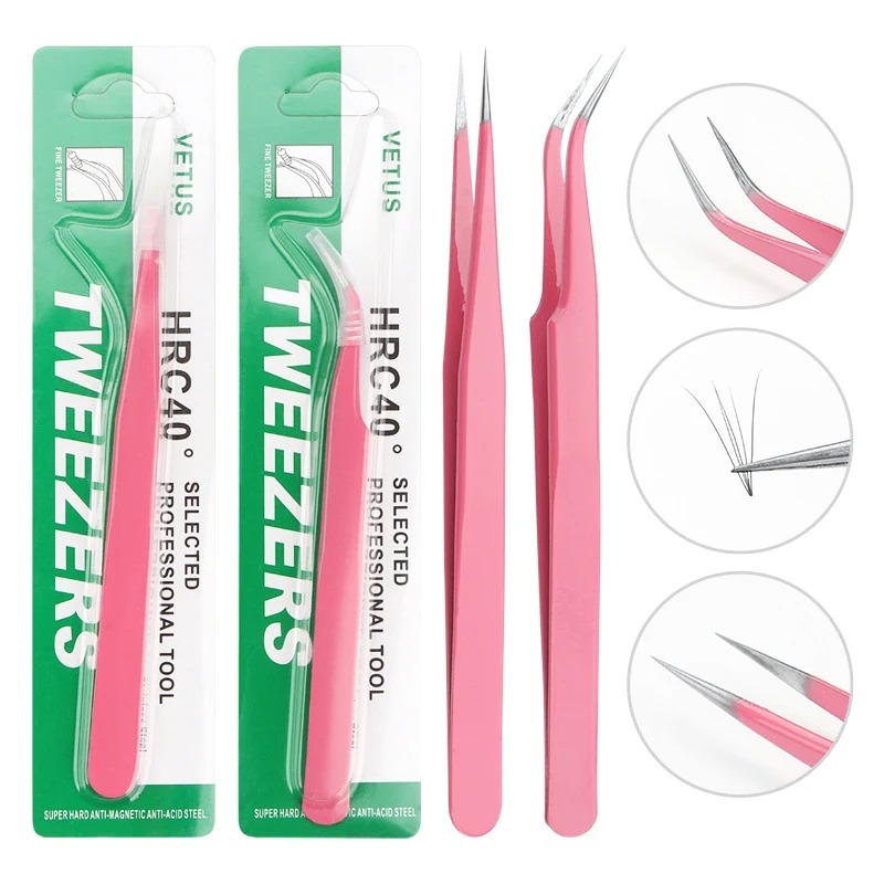 Kit 2 Pinças Para Alongamento De Cílios Fio a Fio