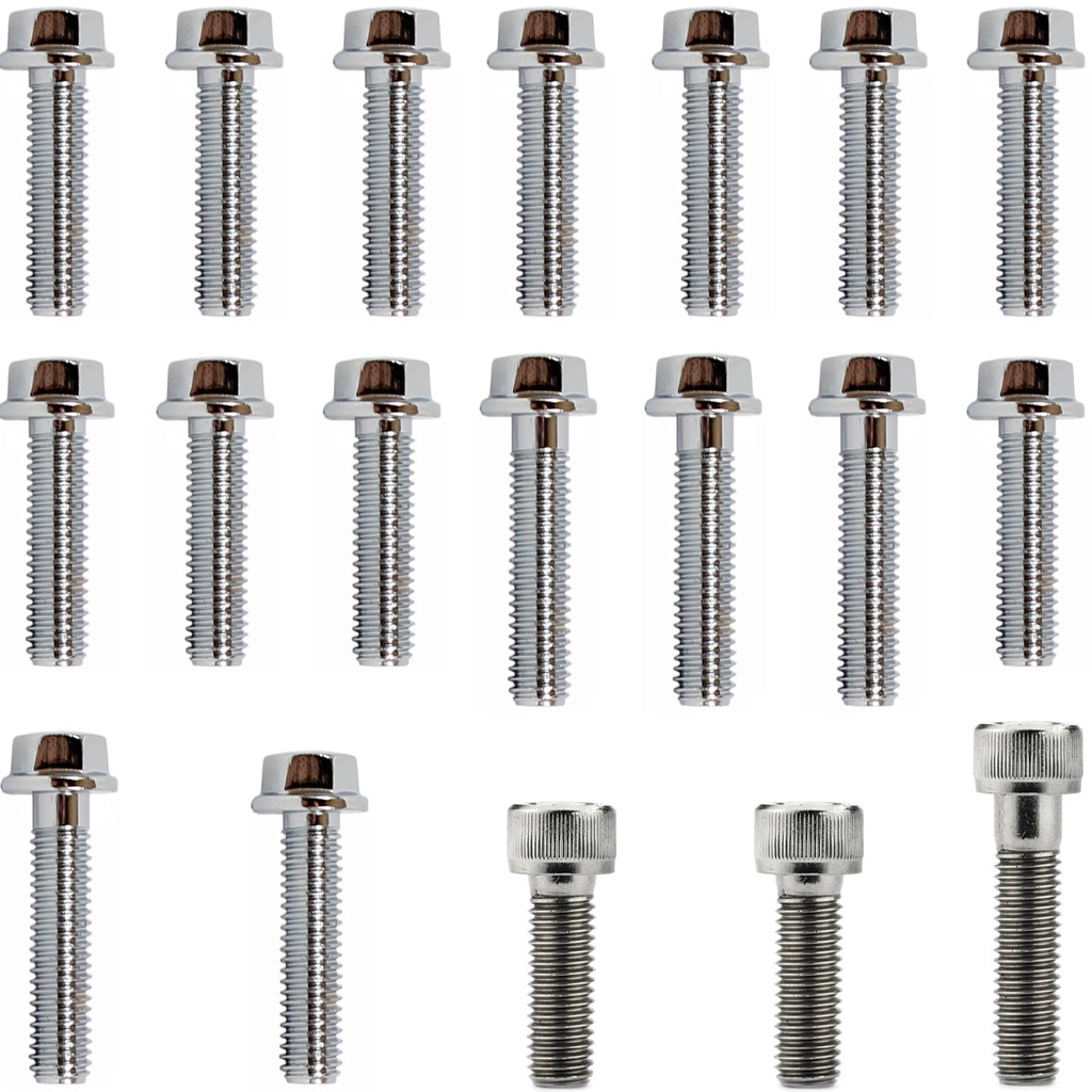Kit parafusos cromados tampa motor lateral esquerda+direita YBR125 Factor XTZ125 2000 a 2016