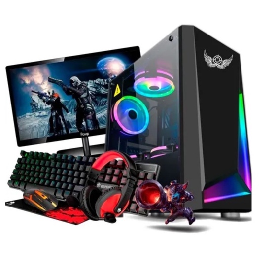 computador cpu gamer completo 8gb ssd128g+hd500gb video r5 230 monitor 19' roda autocad sketchup corel csgo et2 lol dota2 roblox free fire gta5