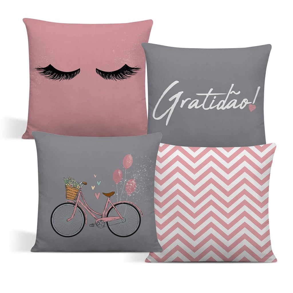 Kit 04 Capa de Almofada 42cm x 42cm Digital Estampa Cílios Rosê Olinho