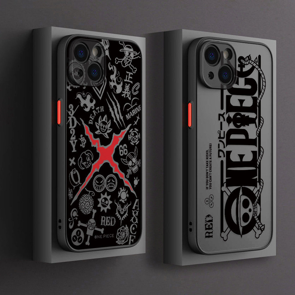 Caixa Para iPhone 15 14 13 12 Mini 11 Pro Max X XS XR XSMAX 8 7 6 Plus SE2020 One Piece Logotipo Da Do Telefone Com O Peça Capa Preta Translúcida Fosca