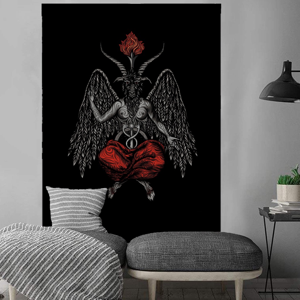 Bandeira tapeçaria de parede canga decoração gótica Baphomet demon