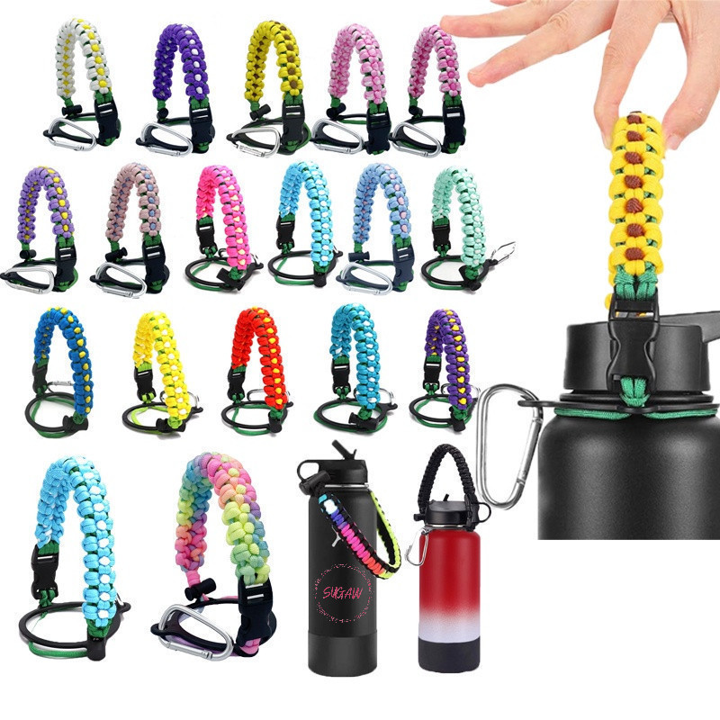 Alça para garrafa Pacco Garrafa de água com corda Paracord Suporte de copo Garrafa de boca larga Garrafa de água portátil Corda para garrafa de água Alça Alça para copo Transportador Corda colorida para copo para Pacco Acessórios SUGAW