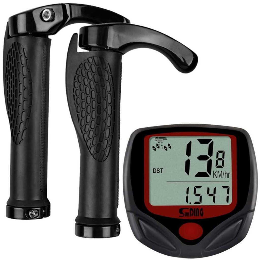 kit Velocímetro Digital Bike A Prova D'agua Com Fio 15 Função + Par De Manopla Bike Ciclismo Anatômica Gel Trava Bar End Qualidade Conforto