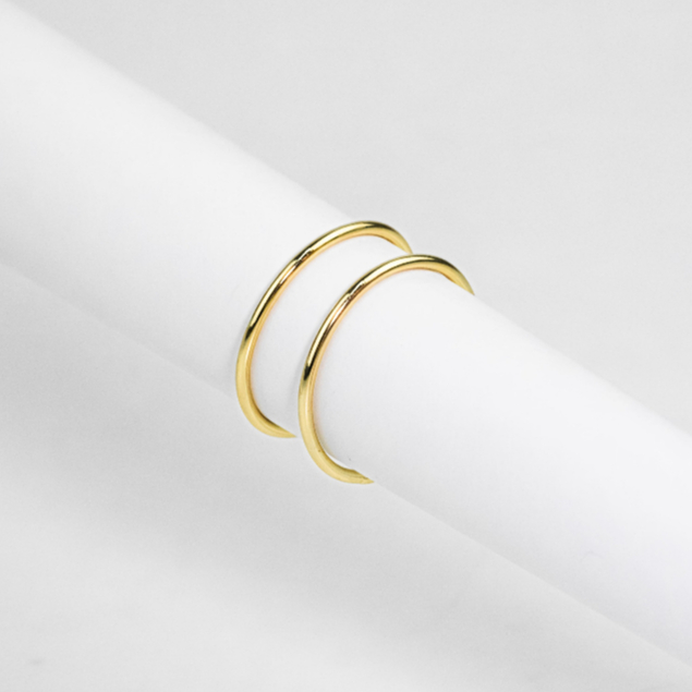 Kit com Dois Anéis Par de Alianças Finas de Fio Liso Banhadas a Ouro 18k
