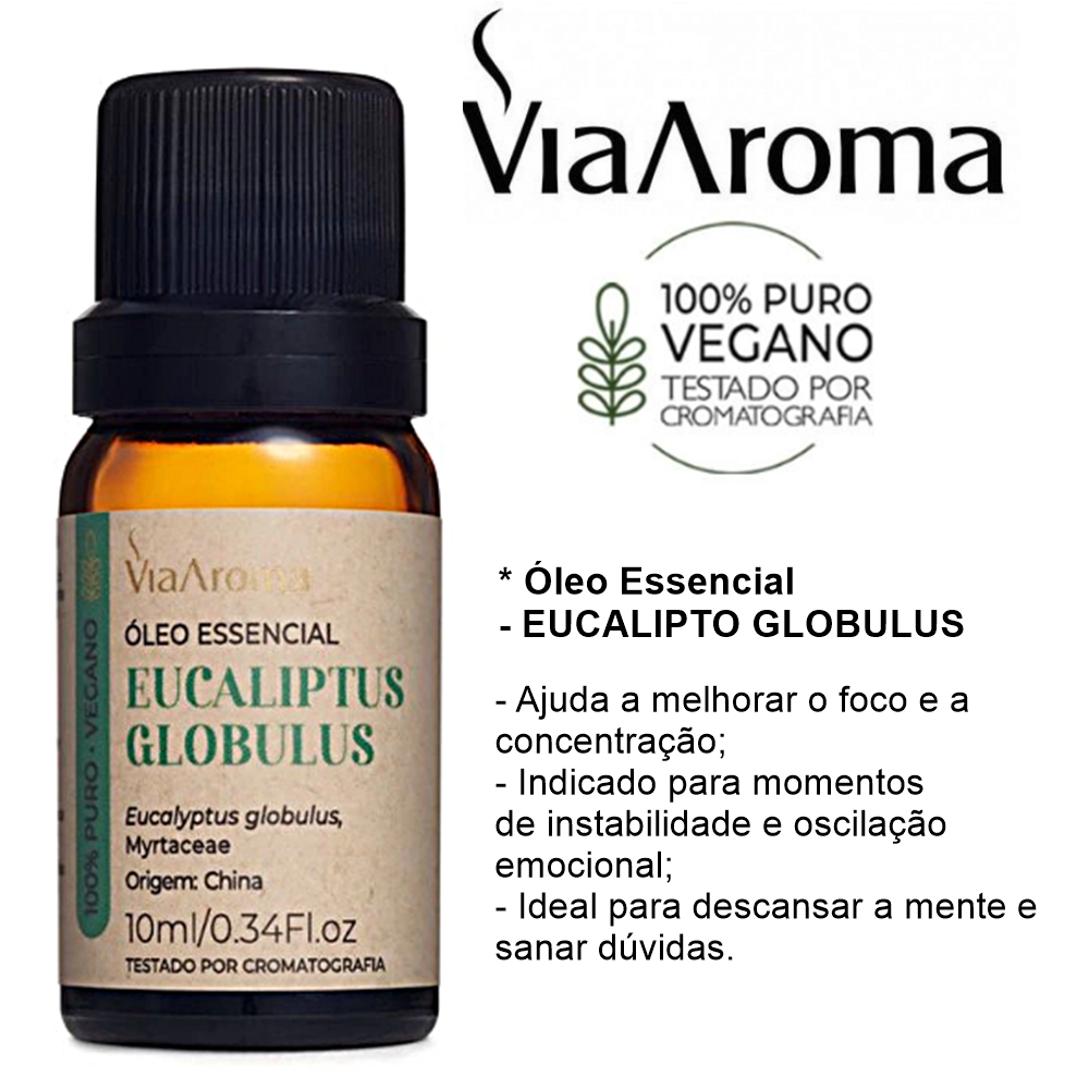 Óleo Essencial EUCALIPTO EUCALIPTUS GLOBULUS Via aroma Aromaterapia 100% Natural e Puro