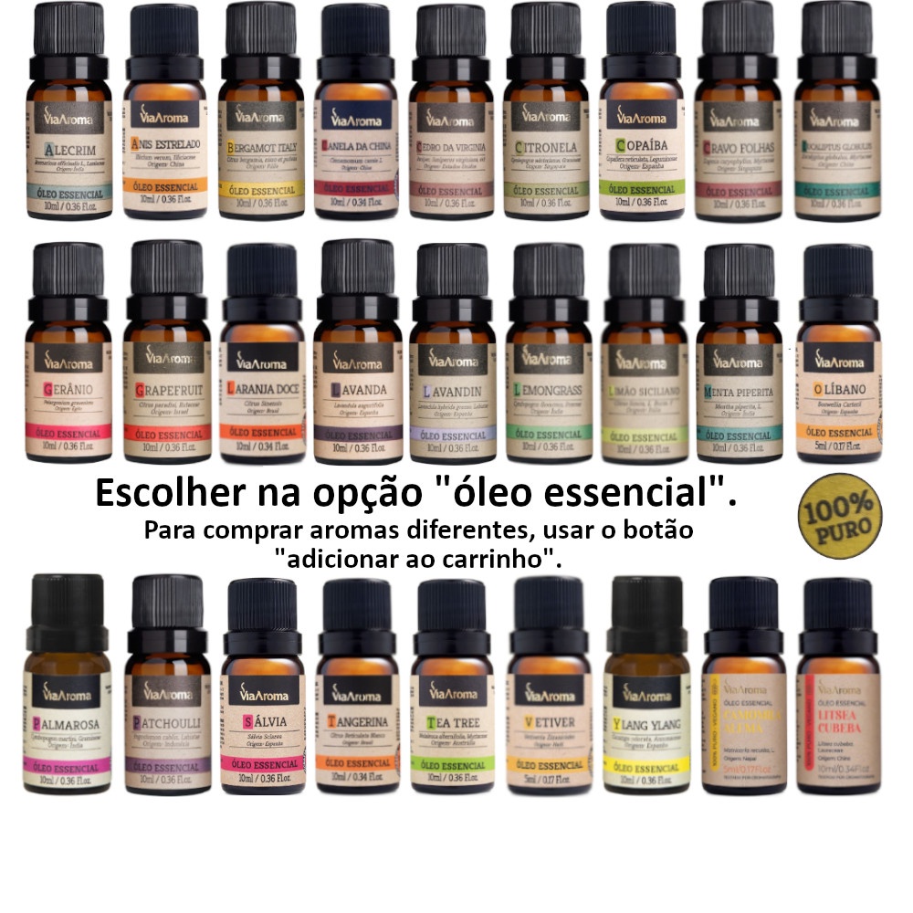 Óleo Essencial 100% Puro e Natural Aromaterapia Via Aroma - Para Aromatizador Difusor Elétrico