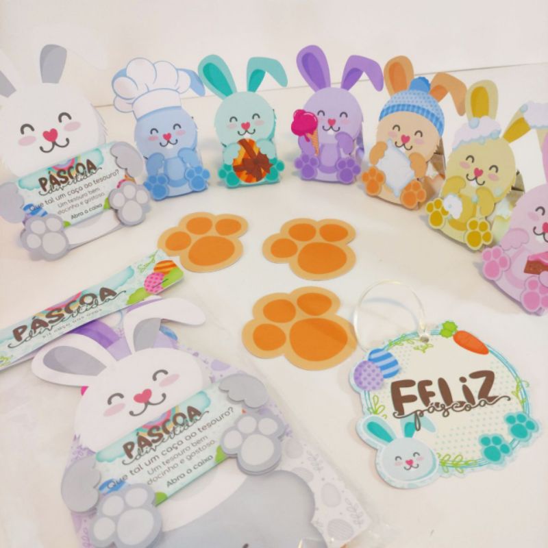 Kit Caça Aos Ovos Coelho Feliz Páscoa Brincadeira Escolha o Modelo + 40 Pegadas Coloridas