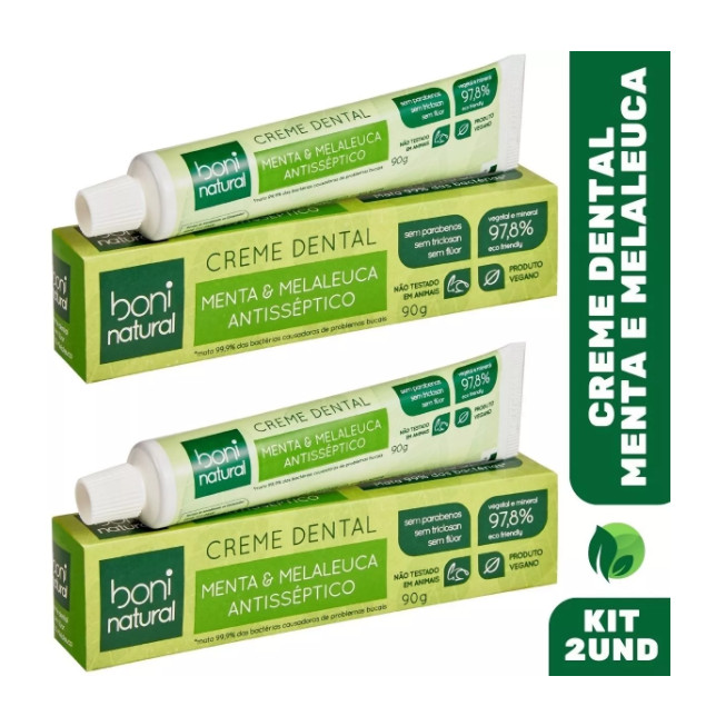Kit 2 Creme Dental Menta e Melaleuca Boni Natural 90g