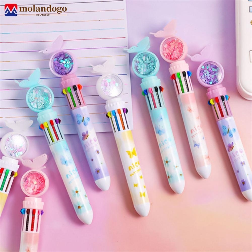 MOLANDOGO 10Color 0.5mm Caneta Esferográfica Estudantil Colorida Borboleta Fofa Canetas Coloridas Kids Diary Scrapbooking Desenho Estacionário N3W2