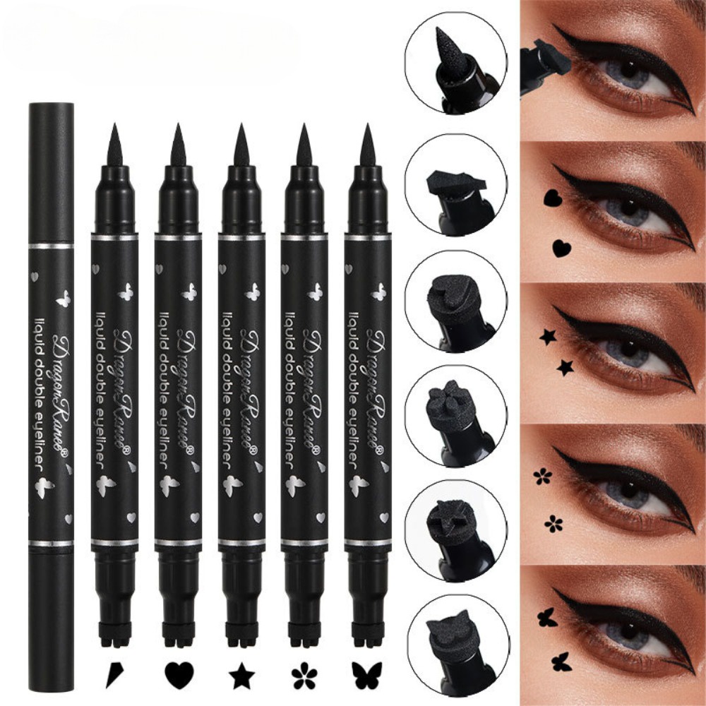 Carimbo Delineador De Olhos Com Dupla Extremidade , Líquido À Prova D'água De Coração/Flor/Lua/Estrela , Caneta Delineadora De Longa Duração Para Maquiagem , Ferramenta De Decoração Dos Preto Não