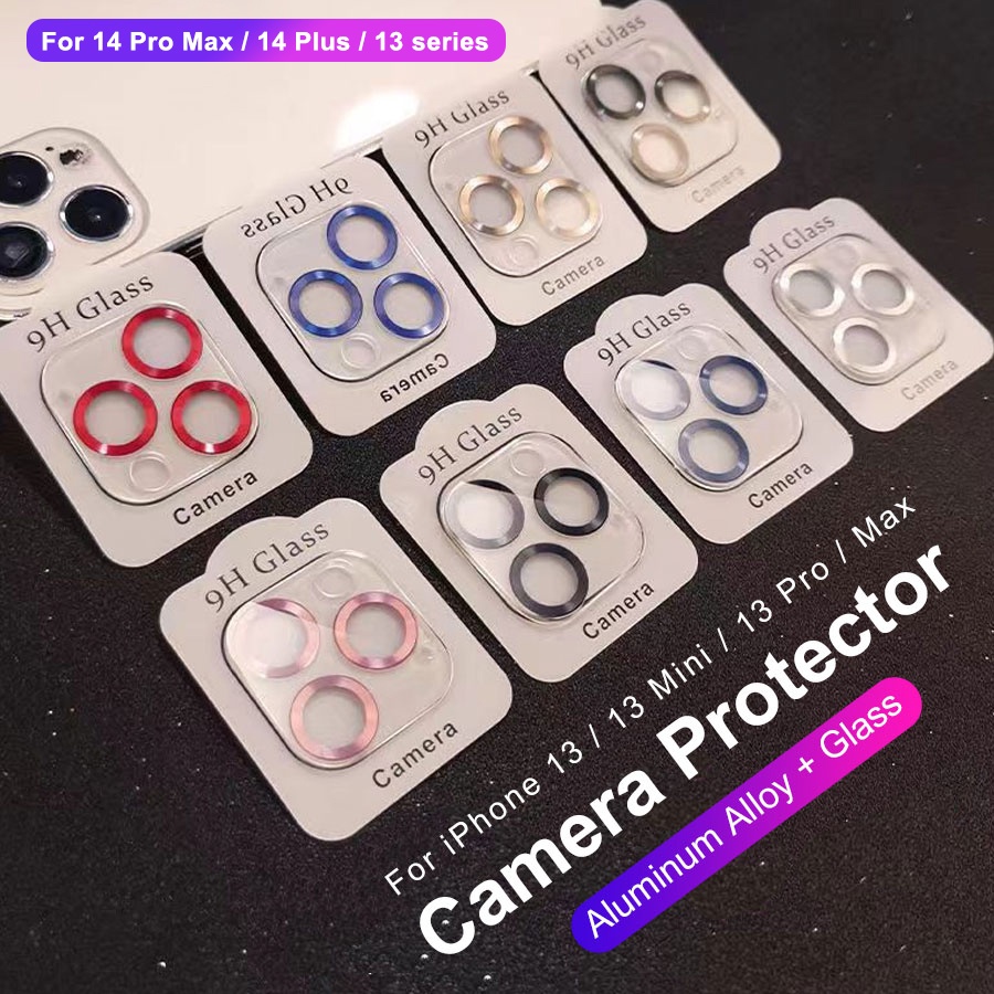 Para iPhone 11 12 13 14 15 Pro Max/14 15 Plus/13 mini Anel Protetor De Metal Da Lente Traseira Câmera Com Vidro Temperado