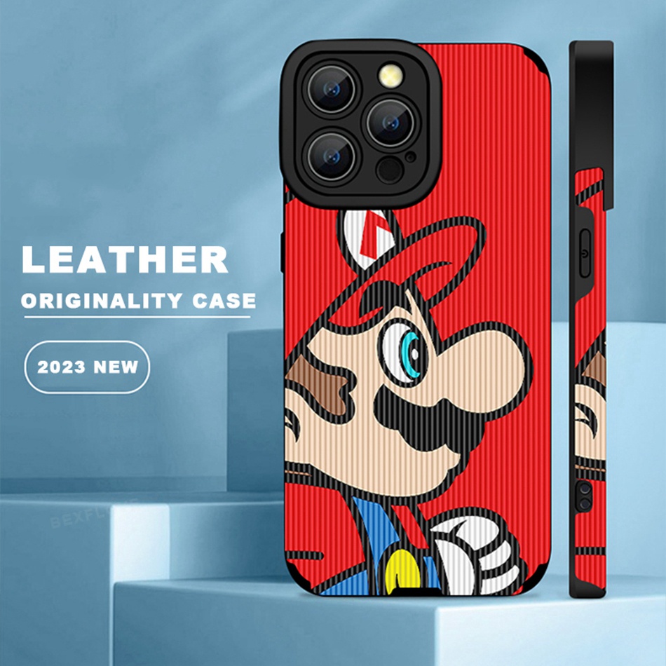Capa De Couro Para iPhone 15 11 12 13 14 Pro MAX 7 8 Plus X XR 11Pro 13Pro XS SE 2020 15Pro Silicone Super Mario Protetor Macio À Prova De Choque