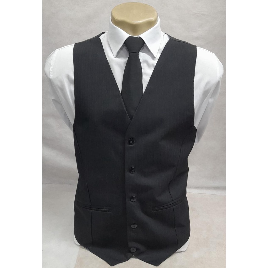Colete Social Adulto - Preto Risca de Giz Listrado com Ajuste nas Costas - COD: BS9876