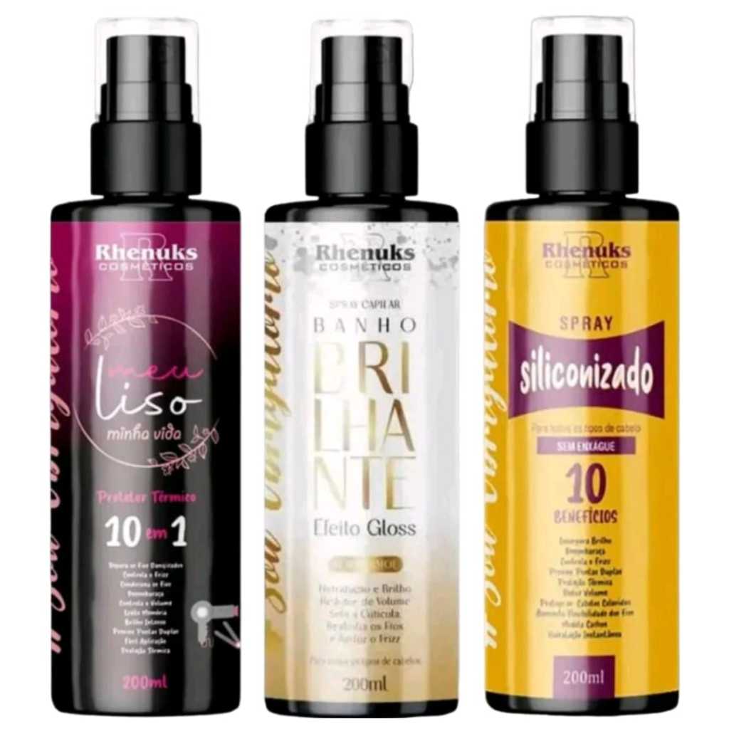 Kit Spray Protetor Térmico Capilar Meu Liso E Banho Brilhante 200ml Rhenuks