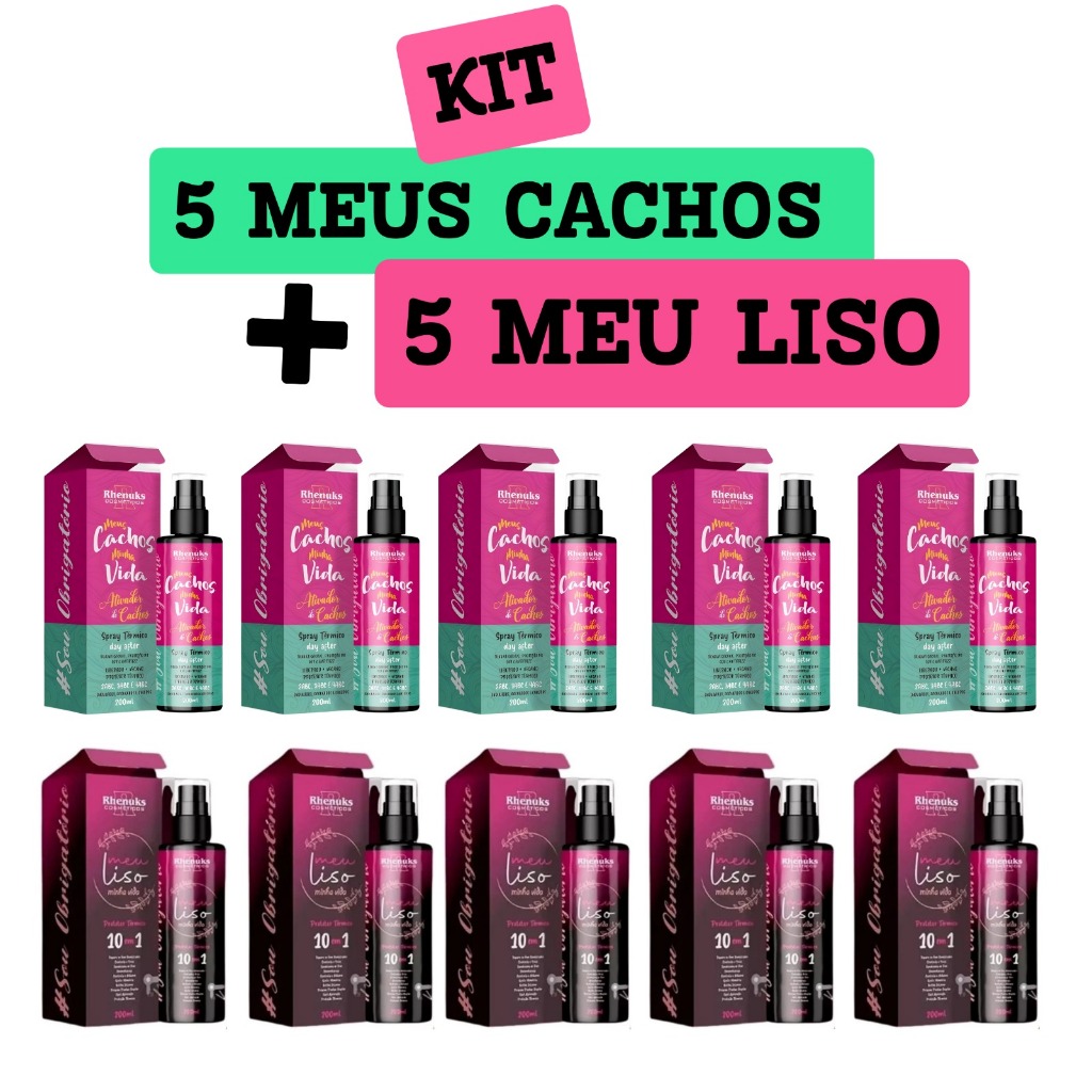 Kit com 5 Spray Capilar Meu liso + 5 Spray Capilar Meus Cachos 200ml cada