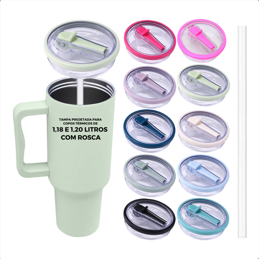 Kit 1 Tampa Flip De Reposição Antivazamento E 1 Canudo Para Copo Térmico 40 Oz 1,180 L e 1200 ML