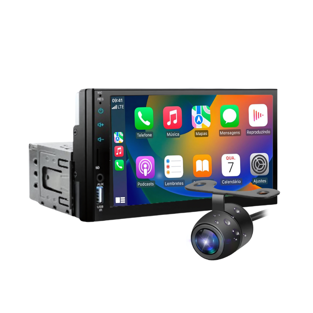 Central Multimídia MP5 Automotiva 1 Din Bluetooth USB/AUX/TF 7 Polegadas Com Mirrorlink HD Touch Screen+COM câmera de ré