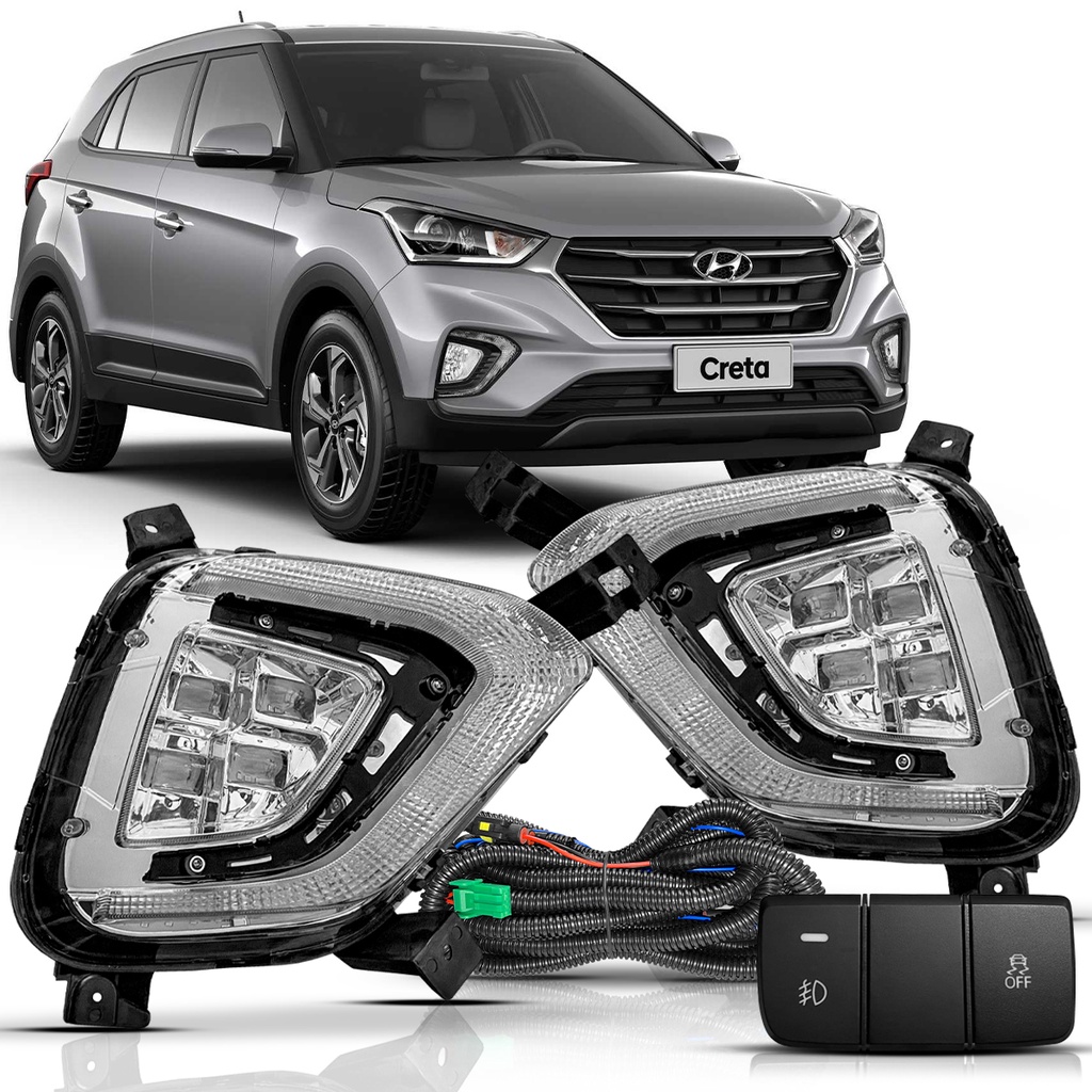Kit Farol de Milha Hyundai Creta 2020 2021 + Molduras + Botão Original