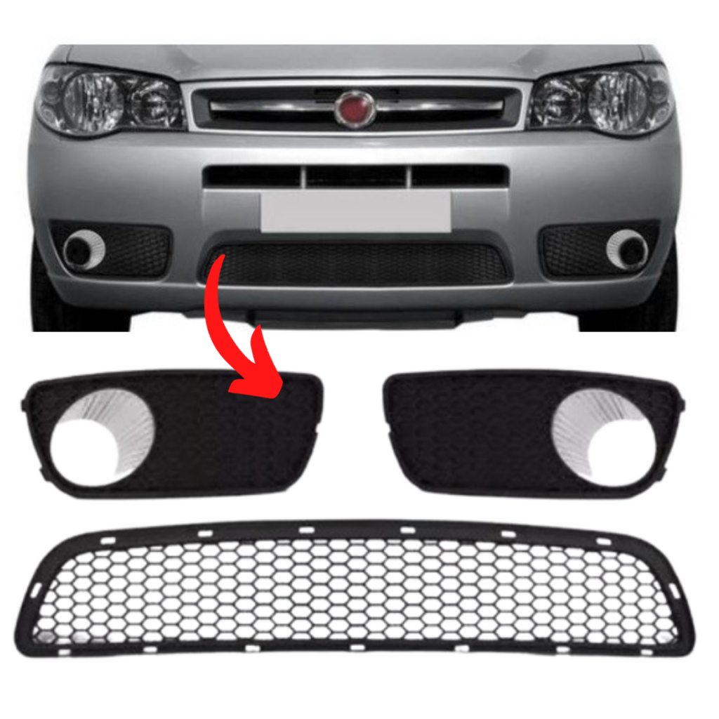 Kit Grades Molduras Central Farol De Milha Parachoque Dianteiro Palio Siena Economy Friso Cromado