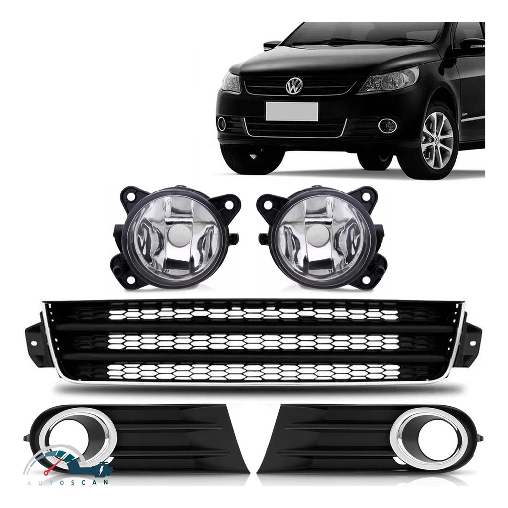 Kit Grades Parachoque Com Farol De Milha Gol Voyage Saveiro G5 Friso Cromado