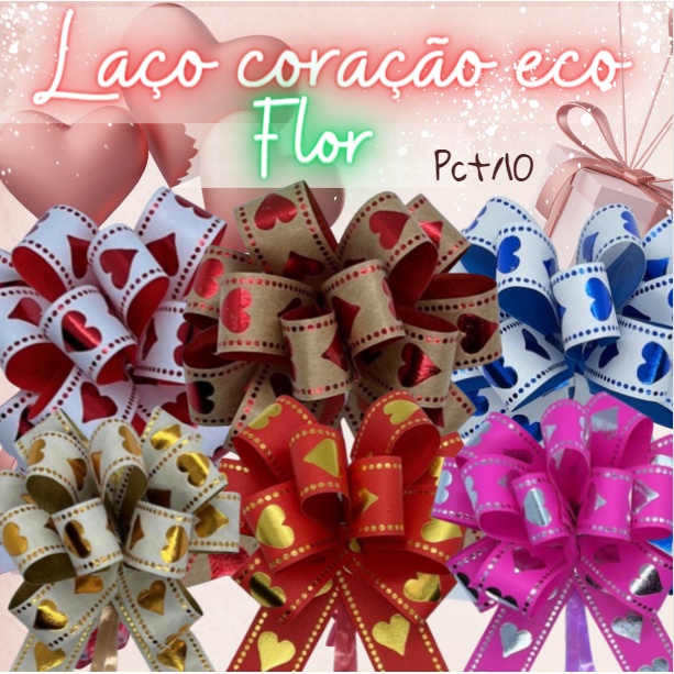 Laço Pronto Para Presente e Embalagem Laço Coração Flor 10 unidades