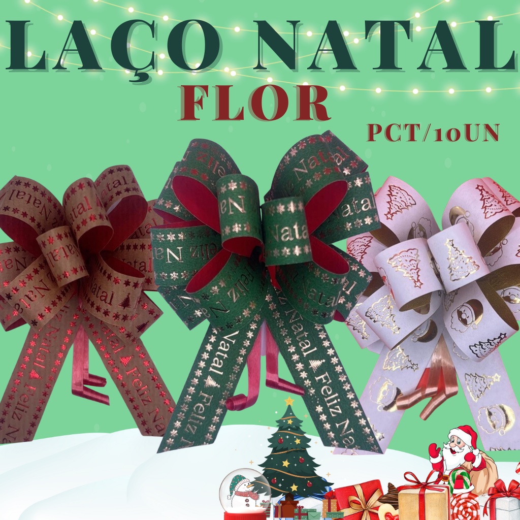 Laço Pronto Para Presente e Embalagem -Flor Grande NATAL 10 Unidades
