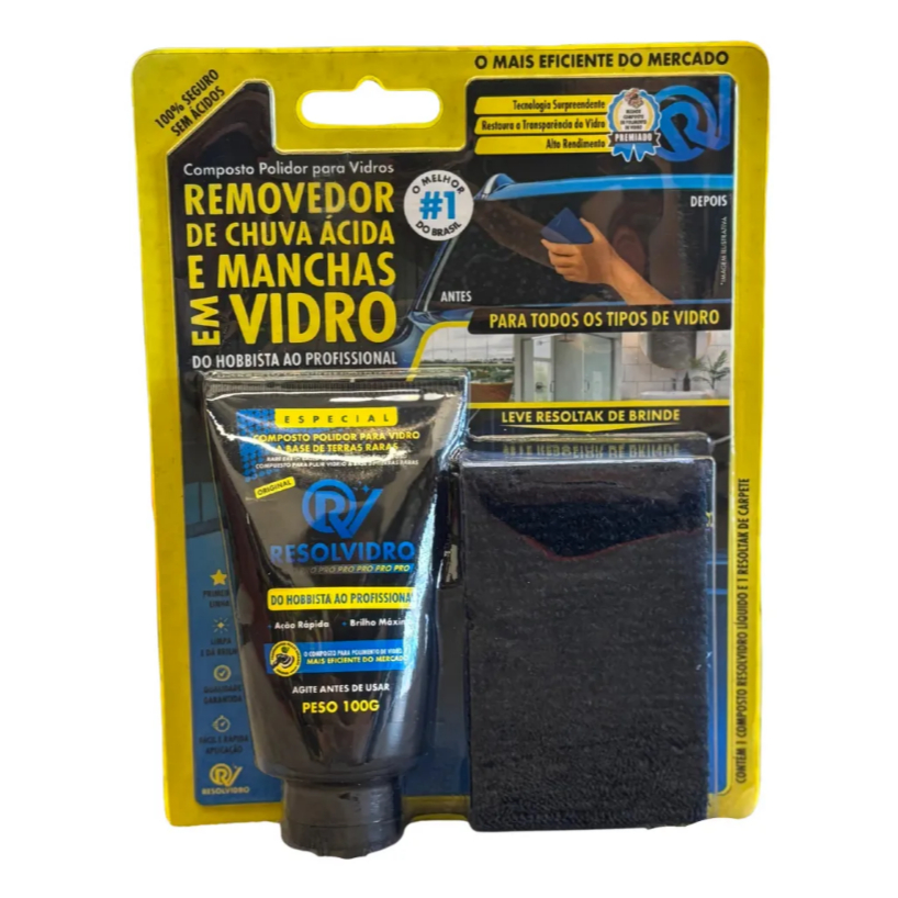 Kit Removedor de chuva ácida e manchas de vidro Resolvidro Taco + Composto 100g