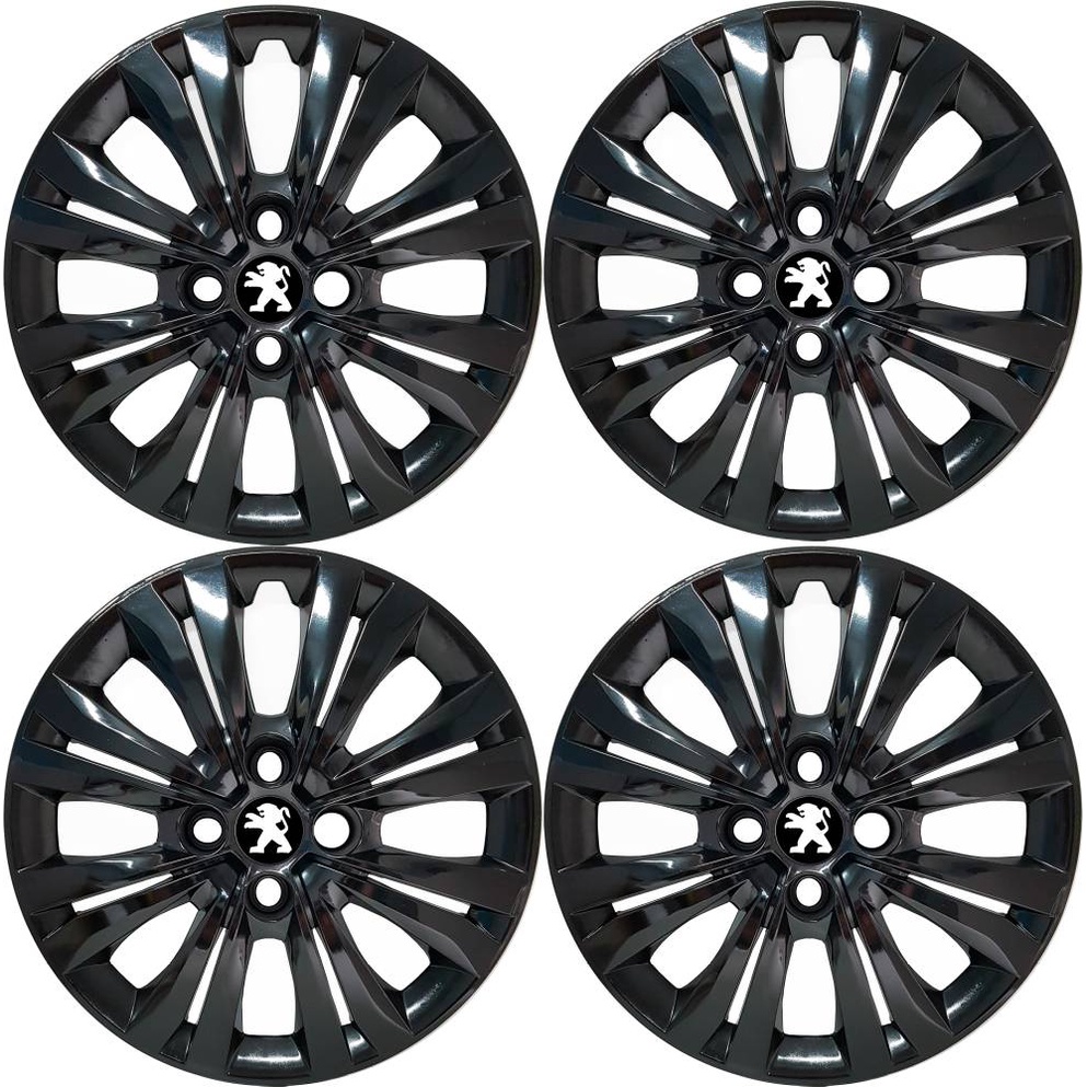 Jogo 4 Peças de Calotas Preto Black Piano Parafusada Peugeot 206 207 306 Aro 14 G245pbj