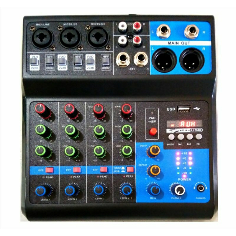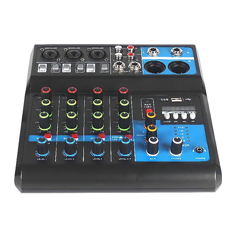 Mesa de Som Digital tem Bluetooth Efeito Voz mixer profissional 4 Canais Pendrive Gravação RCA e Usb para Computador Phantom Power 48v para microfone condensador Delay Repeat Console Mistura de Audio Som Ao Vivo Bob não é 12V Musica A4