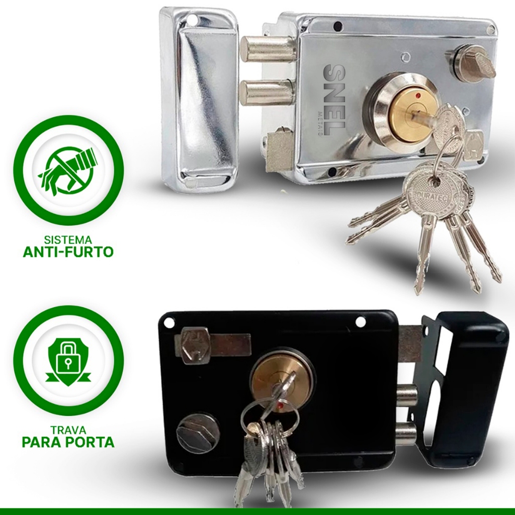 Fechadura Portão Elétrica Anti Furto Com Trava de Proteção Para Porta - Snel