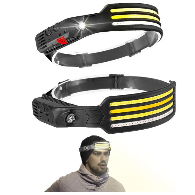 Farol de LED Recarregável Lanterna de Cabeça Com 6 Fita Led Cob + Luz de Foco e Sensor De Movimento , Faróis Para Adultos, Lanterna De Cabeça Para Ciclismo, Corrida e Reparos