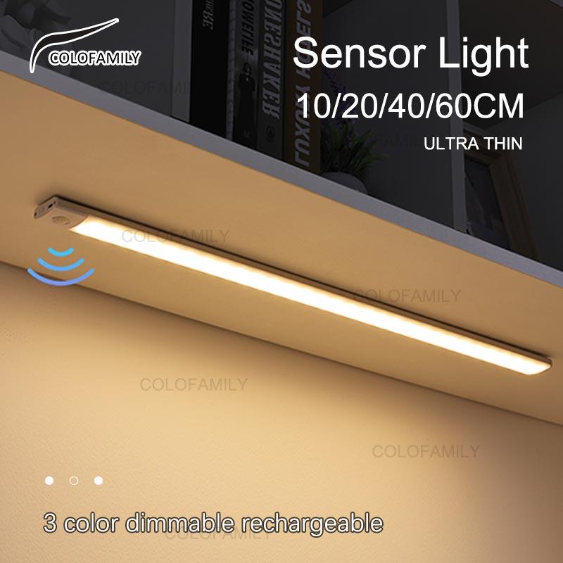 Luz Magnética LED De Noite Com Sensor De Movimento De 3 Cores USB Recarregável Para Armário De Cozinha Roupeiro Do Quarto Lâmpada Cabeceira