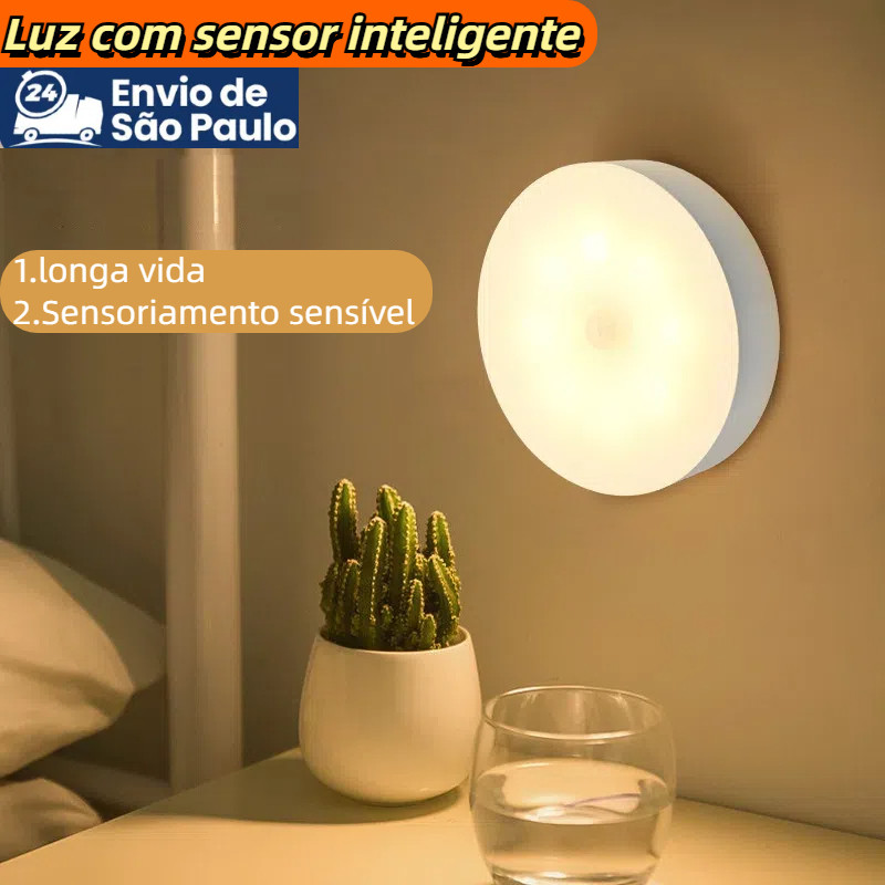 Luminária de Noite USB Recarregável com Sensor de Movimento, Lâmpada LED Duas cores Luz Quente Frio