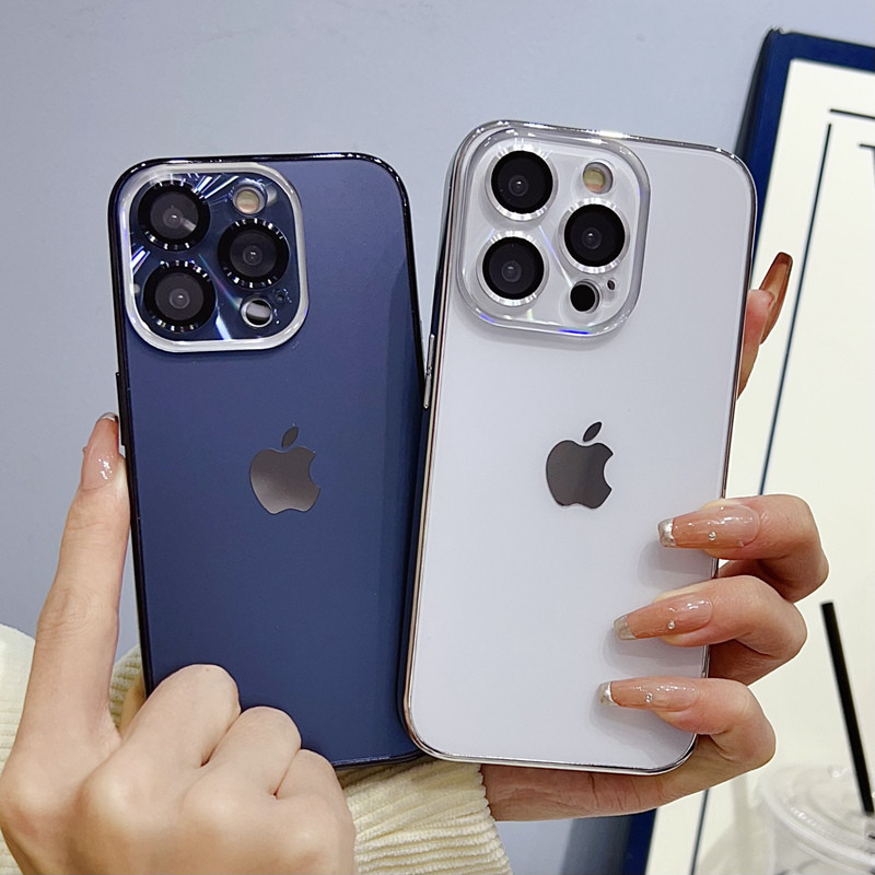 Capa De Proteção De Lente De Vidro Cristal AG De Alta Qualidade PC Fosco Galvanizado Para iPhone 15 14 13 12 11 Pro Max 15Plus Anti-Queda Traseira