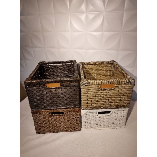 kit com 3 gaveta caixa organizadora sem tampa porta objetos para closet banheiros fibra sintético vime junco 25x29x15