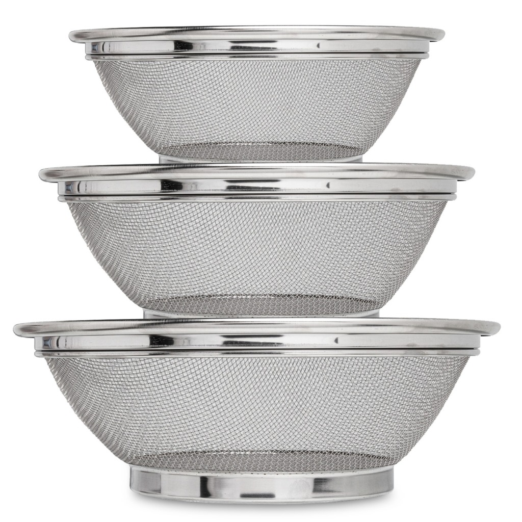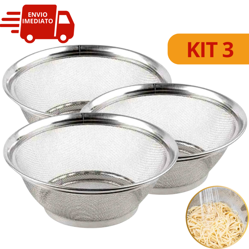 Kit 3 Escorredor de Macarrão Aço inox Peneira de Alimentos e Vegetais Multiuso Tamanhos Variados