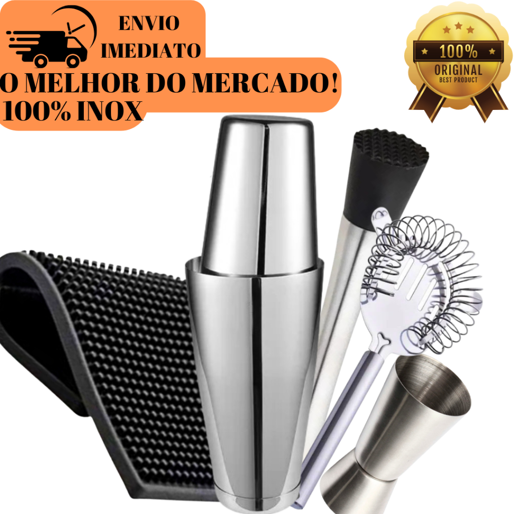 Kit Coqueteleira Com Coador Socador De Bebidas E Dosador Em Inox De Caipirinhas E Drinks E Tapete Antiaderente Escorredor Para Bebidas Para Bartender Bar Restaurantes Kit Caipirinhas Kit Barman