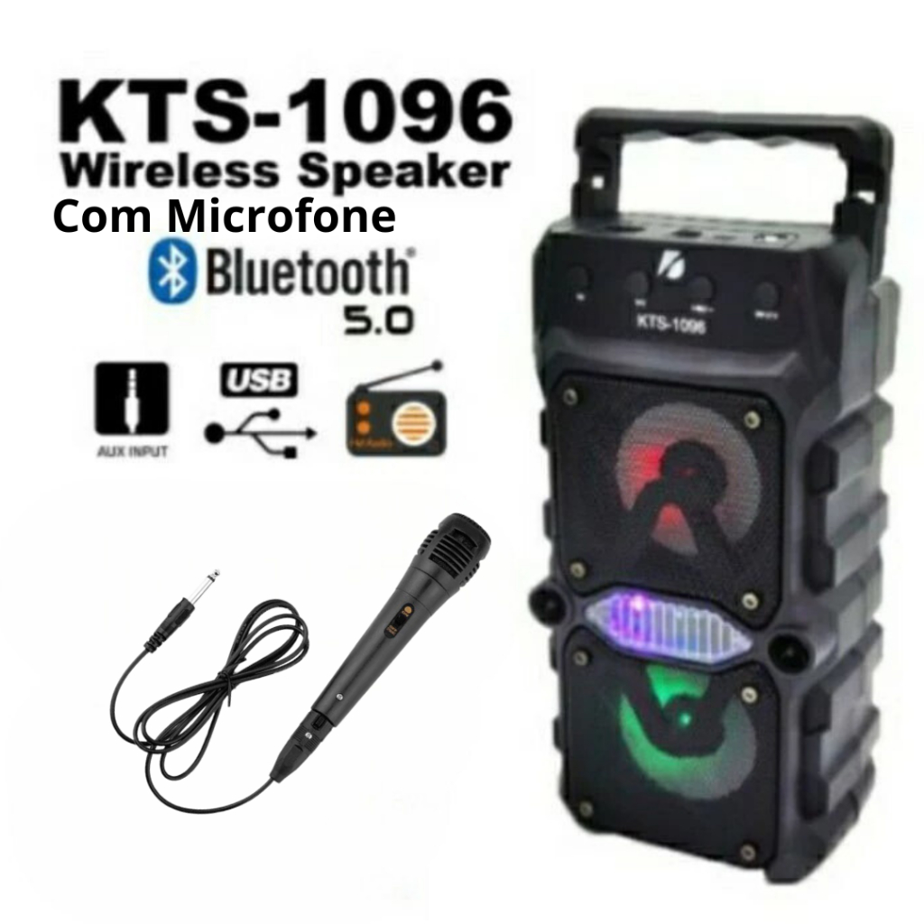 Caixa de Som Bluetooth Com LED Potente Speaker Entrada Microfone USB Micro SD Radio FM Kts 1096