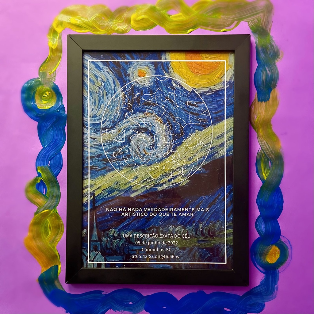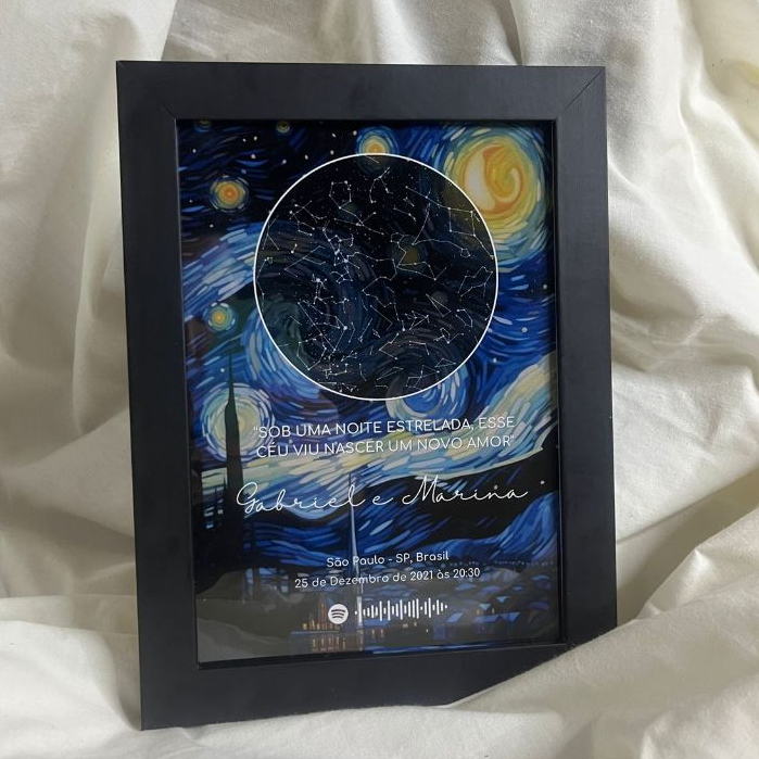 Quadro Van Gogh Placa A4 Mapa Estelar Personalizado Constelação - Como Estava o Céu - Presente, Decoração, Aniversário, Namorado, Surpresa, Criativo